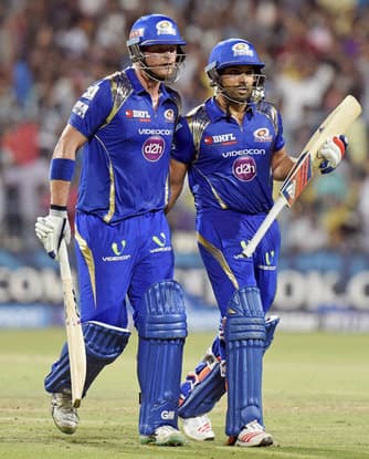 रोहित ने मोर्कल के एक ओवर में तीन चौके जडकर शुरुआत की और फिर शाकिब पर आईपीएल आठ का पहला छक्का लगाया लेकिन तेजी से रन नहीं बन रहे थे. मुंबई का स्कोर 14 ओवर तक तीन विकेट पर 80 रन था.