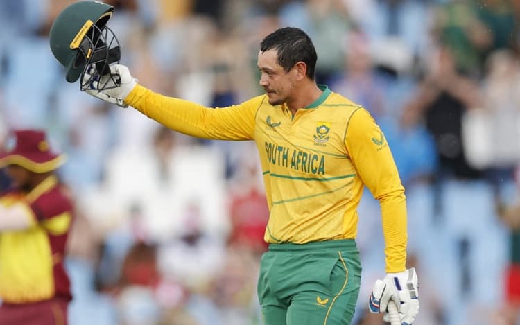 South Africa vs West Indies T20I Match: रविवार को दक्षिण अफ्रीका और वेस्टइंडीज के बीच टी20 सीरीज का दूसरा मुकाबला खेला गया. यह मुकाबला काफी रोमांचक रहा. वहीं इस मैच में रिकॉर्ड्स की झड़ी लग गई. मैच में पहले बल्लेबाजी करते हुए कैरिबियाई टीम ने 258 रनों का विशाल स्कोर खड़ा किया. टीम की ओर से जोनासन चार्ल्स ने 46 गेंद में 11 छक्के और 10 चौके की मदद से ताबड़तोड़ 118 रन बनाएं. इतना बड़े टारगेट के बाद लगा कि वेस्टइंडीज टीम आसानी से यह मुकाबला जीत जाएगी. पर दक्षिण अफ्रीकी टीम ने मुकाबले में और धमाल मचा दिया और यह मैच 18.5 ओवर्स में ही जीत लिया. अफ्रीका की ओर से सलामी बल्लेबाज क्विटंन डिकॉक ने 44 गेंदों में 8 छक्के और 9 चौके की मदद से 100 रन बनाएं.