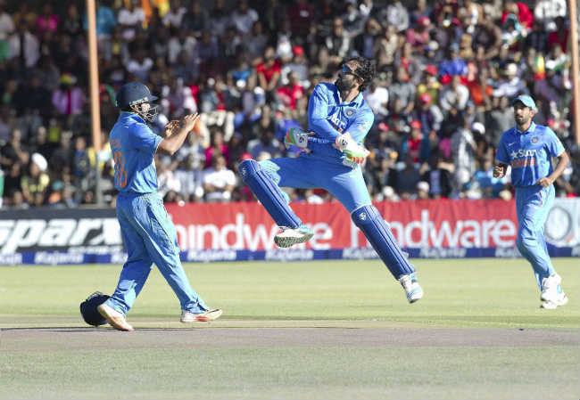 हरभजन ने जिंबाब्वे के चार्ल्स कोवेंटरी (10) को 11वें ओवर में आउट किया. उस समय मेजबान टीम का स्कोर चार विकेट पर 68 रन हो गया था और प्रति ओवर 14 की औसत से रन बनाने थे. पटेल ने 16वें ओवर में सिकंदर रजा (10) के रुप में तीसरा विकेट लिये जबकि अंतरराष्ट्रीय क्रिकेट में पदार्पण करने वाले संदीप शर्मा ने 18वें ओवर में ग्रीम क्रेमर के रुप में पहला विकेट लिया.