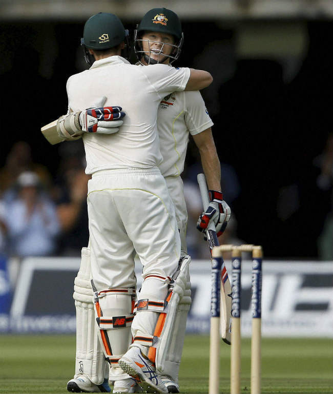 ऑस्ट्रेलियाई कप्तान माइकल क्लार्क सिर्फ सात रन बनाकर मार्क वुड की गेंद पर स्क्वेयर लेग में गैरी बालांस को कैच दे बैठे. ब्राड ने एडम वोजेस और मिशेल मार्श को आउट किया लेकिन स्मिथ डटे रहे. दो टेस्ट पहले ही वेस्टइंडीज के खिलाफ 199 रन पर आउट हुए स्मिथ ने आफ स्पिनर मोईन अली को अपनी पारी का 24वां चौका लगाकर 200 रन पूरे किये. उसके बाद उन्होंने लार्ड्स पर ऑस्ट्रेलिया के लिये दूसरा सर्वोच्च व्यक्तिगत स्कोर बनाया.