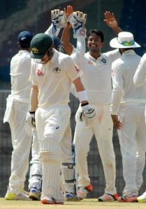 इससे पहले भारत के कल के अविजित बल्लेबाजों विजय शंकर और मिश्रा (27) ने सुबह ऑस्ट्रेलिया को सफलता के लिये तरसा दिया. इन दोनों ने सातवें विकेट के लिये लगभग 31 ओवरों में 62 रन की साझेदारी की. ओकेफी ने आखिर में मिश्रा को पगबाधा आउट करके यह साझेदारी तोडी जिन्होंने अपनी पारी में 93 गेंदें खेली और एक चौका लगाया.