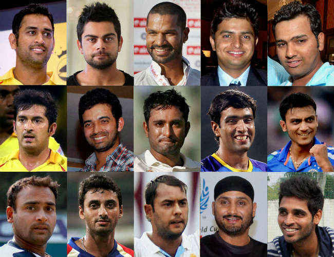 महेंद्र सिंह धौनी (कप्तान और विकेटकीपर), शिखर धवन, रोहित शर्मा, विराट कोहली, सुरेश रैना, अजिंक्य रहाणे, अंबाती रायुडु, स्टुअर्ट बिन्नी, आर अश्विन, अक्षर पटेल, गुरकीरत सिंह मान, भुवनेश्वर कुमार, मोहित शर्मा, अमित मिश्रा और उमेश यादव.
