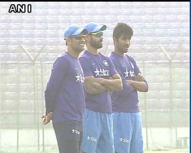 फुटबॉल पसंद करने वाले धौनी पवेलियन छोर पर लगे गोल पोस्ट के पीछे खड़े रहे और उन्होंने अपने टीम के साथियों को अभ्यास करते हुए देखा. बाद में नेट अभ्यास शुरु होने पर उन्होंने सुरेश रैना और रोहित शर्मा को बल्लेबाजी करते हुए देखा. उन्होंने अजिंक्य रहाणे को कैचिंग अभ्यास भी कराया जिनके कल होने वाले मैच में खेलने की संभावना कम ही है क्योंकि टीम में विराट कोहली की वापसी हुई है.