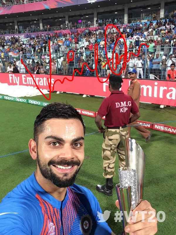 महान बल्लेबाज सचिन तेंदुलकर ने विराट कोहली का उनकी मैच विजेता पारी के लिये आभार व्यक्त करके इसकी अगुवाई की. कोहली ने नाबाद 55 रन की पारी खेलकर भारत को जीत दिलायी. उन्होंने अर्धशतक पूरा करने के बाद तेंदुलकर का आभार व्यक्त किया जो तब स्टेडियम में मौजूद थे। बाद में इसके लिये तेंदुलकर उनका शुक्रिया अदा किया. तेंदुलकर ने अपने ट्विटर हैंडल पर लिखा, ‘‘भारतीय टीम की शानदार जीत। बेहतरीन पारी और आभार के लिये शुक्रिया विराट कोहली. मैच के बाद भारतीय टीम ड्रेसिंग रुम की तरफ लौटते हुए मेरी तरफ हाथ हिला रही है. ऐसा महसूस हो रहा है कि जैसे मैंने कभी टीम छोडी ही नहीं थी. ‘