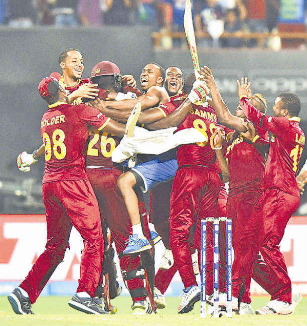 पूरी प्रतियाेगिता में वेस्ट इंडीज के खिलाड़ियाें का मनाेबल बढ़ा दिखा. लगा कि वे हर मैच काे जीतने के लिए जीन-जान लगा दे रहे थे. टीम के सभी 15 खिलाड़ियाें ने (जिन्हें जब माैका मिला) अपनी भूमिका निभायी. लक्ष्य था-हर हाल में जीत हासिल करना. कभी गेल चले ताे कभी चार्ल्स. यह ये नहीं चले ताे सिमंस, ब्रेवाे आैर सैमुअल्स ने कमाल दिखाया. जब ये सब चले गये ताे ब्रेथवेट भी पीछे नहीं रहे. इसी जज्बे ने इंग्लैंड, दक्षिण अफ्रीका, पाकिस्तान आैर भारत जैसी टीमाें काे हराया. सेमीफाइनल में गेल के आउट हाेने के बाद भी वेस्टइंडीज के खिलाड़ियाें ने हार नहीं मानी आैर उसी तेवर से खेलते रहे. फाइनल में अंतिम आेवर के पहले तक वेस्ट इंडीज की हार तय मानी जा रही थी.