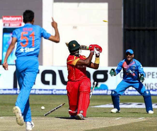 भारत को पहली कामयाबी तीसरे ओवर में चामू चिभाभा (10 ) के रुप में मिली जिन्हें सरन ने पवेलियन भेजा. दो ओवर बाद हरियाणा के इस तेज गेंदबाज ने हैमिल्टन मसाकाजा (10) को आउट किया. इसके बाद उसने सिकंदर रजा को गली में केएल राहुल के हाथों लपकवाया. तिनोतेंडा मुतोम्बोजी अगली ही गेंद पर आउट हो गए जिससे सरन उस समय हैट्रिक पर था. वह हालांकि हैट्रिक पूरी नहीं कर सका. निचले क्रम को बुमरा ने पवेलियन भेजा. लेग स्पिनर युजवेंद्र चहल और तेज गेंदबाज धवल कुलकर्णी को भी एक एक विकेट मिला.
