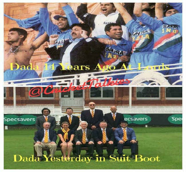 दादा की यह तसवीर काफी चर्चा में रही है. इससे उनकी आक्रामकता की पहचान भी होती है. दरअसल लॉडर्स में जब टीम इंडिया ने इंग्लैंड की टीम पर जीत दर्ज की थी तो बतौर कप्तान गांगुली ने खुशी में अपना टी-शर्ट उतार दिया था. 2002 में 13 जुलाई को खेले गये नेटवेस्ट ट्रॉफी में भारत ने इंग्लैंड को मात दी थी. इस जीत के हीरो थे, युवराज सिंह और मोहम्मद कैफ. दोनों की जोड़ी ने तीन गेंद शेष रहते ही मैच जीत ली थी. इस पर गांगुली अपने आप को नहीं रोक पाये और बॉलकनी में टी-शर्ट को उतार कर लहराया था.