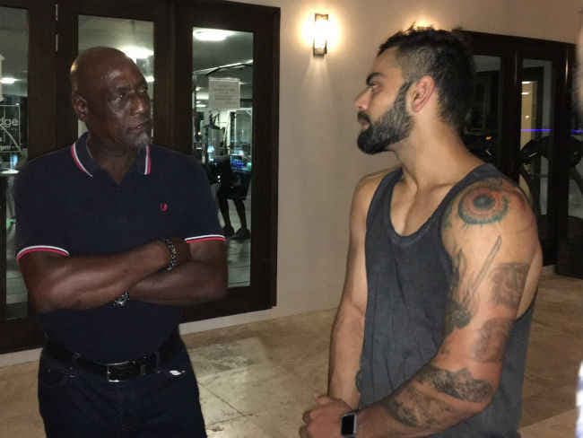 एंटीगा में टीम इंडिया के खिलाड़ियों ने सर विवियन रिचर्ड्स से मुलाकात की और उनसे कुछ टिप्स भी लिये. विराट कोहली और रिचर्ड्स ने एक दूसरे से काफी बातचीत भी की.
