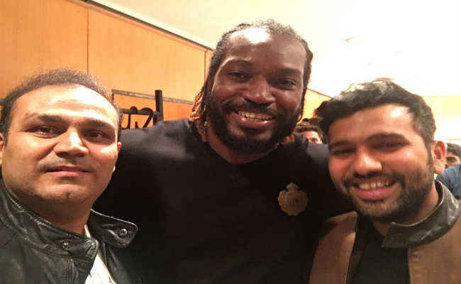 सहवाग ने अपने ट्विटर अकाउंट पर दो तसवीरें पोस्‍ट की हैं, एक में सहवाग क्रिस गेल और रोहित शर्मा के साथ नजर आ रहे हैं और दूसरे में रोहित शर्मा के साथ. इस पोस्‍ट के साथ उन्‍होंने बहुत ही दिलचस्‍प अंदाज में ट्वीट भी किया है. उन्‍होंने लिखा, 4 टेस्‍ट तिहरे शतक और 4 वनडे दोहरे शतक लगाने वाले क्रिकेटर एक साथ.