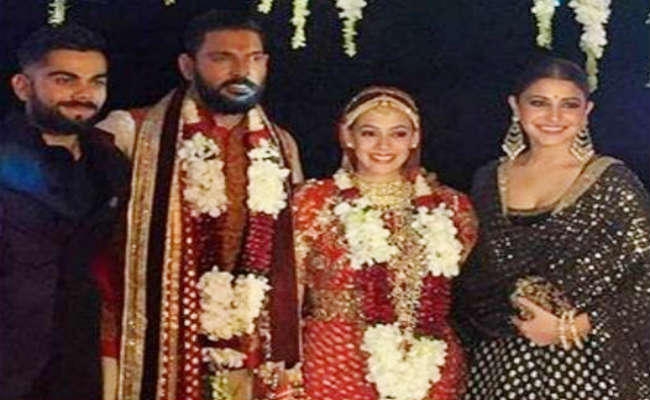 चंडीगढ़ : क्रिकेटर युवराज सिंह और बॉलीवुड अभिनेत्री हेजल कीच विवाह बंधन में बंध चुके हैं. दोनों की शादी पहले पंजाबी रीति रिवाजों से फिर 2 दिसंबर को गोवा में हिंदू रीति रिवाजों के साथ संपन्न हुआ. शादी के मौके पर टीम इंडिया के खिलाडियों ने जमकर जश्न मनाया. शादी के मौके पर युवी के खास और साथी खिलाड़ी, टीम इंडिया के कप्तान विराट कोहली और उनकी बॉलीवुड गर्लफ्रेंड अनुष्का शर्मा भी मौजूद थे.