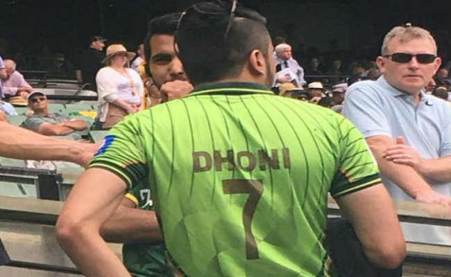 नयी दिल्ली : पाकिस्तान क्रिकेट टीम इन दिनों ऑस्ट्रेलियाई दौरे पर है. दोनों टीमों के बीच टेस्ट मैचों की श्रृंखला खेली जा रही है. मैच के दौरान कुछ ऐसा हुआ कि लोग बस उसी की चर्चा करने लगे. दरअसल मैच के दौरान पाक समर्थक दर्शकों के बीच अचानक धौनी नजर आने लगे. घबराइये नहीं, पाकिस्तान और ऑस्ट्रेलिया के बीच खेले जा रहे टेस्ट मैच का आनंद उठाने धौनी मेलबर्न नहीं गये हैं.