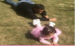 आपने महेंद्र सिंह धौनी को मैदान पर छक्का जड़ते और शानदार कीपिंग करते तो देखा होगा, लेकिन क्या आपने उन्हें रेंगते हुए देखा है? अगर नहीं तो उनका वायरल वीडियो देखें. इस वीडियो में धौनी अपनी बेटी ‘जीवा’ के साथ मैदान पर रेंगते नजर आ रहे हैं. वीडियो में जीवा पिंक कलर का फ्रॉक पहने हुई हैं, जबकि धौनी ने ब्लू जींस और ब्लैक टी-शर्ट पहली है.