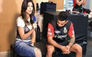 दरअसल टी-20 की मशहूर एंकर अर्चना विजया कुछ दिन पहले आरसीबी के कप्तान विराट कोहली का इंटरव्यू कर रही थीं. उसी दौरान विराट कोहली की नजर उनकी फटी हुई जींस पर पड़ी और उनकी तसवीर कैमरे में कैद हो गयी. हालांकि बातचीत के दौरान कोहली अपना सिर निचे किये और कैमरामैन ने तसवीर अपने कैमरे में कैद कर ली.