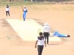 घटना का एक वीडियो सामने आया है, जिसमें साफ-साफ देखा जा सकता है कि नॉन स्ट्राइक छोर पर खड़ा बल्लेबाज अचानक जमीन पर गिरता है और साथी खिलाड़ी उसकी मदद के लिए आगे आते हैं.