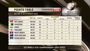 नयी दिल्ली : न्यूजीलैंड के खिलाफ टेस्ट सीरीज में शानदार जीत के बाद भी भारत आईसीसी टेस्ट चैंपियनशिप के प्वाइंट टेबल में तीसरे नंबर पर ही है. भारत से भी कम टेस्ट मैच खेलने वाली श्रीलंका और पाकिस्तान की टीम प्वाइंट टेबल में टीम इंडिया के ऊपर है. जबकि देखा जाए तो प्वाइंट के मामले में भारत सबसे आगे है. 6 टेस्ट मैच खेलने के बाद भारत के 42 अंक हैं.