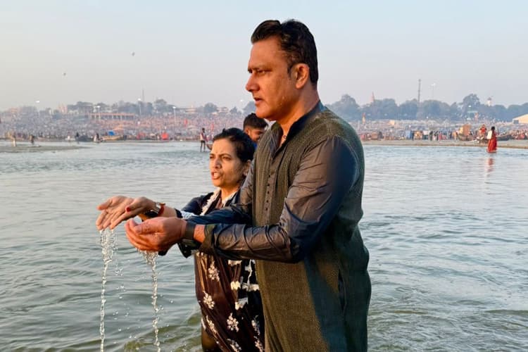 Anil Kumble: पूर्व भारतीय क्रिकेटर और कोच अनिल कुंबले ने माघ पूर्णिमा के पावन अवसर पर त्रिवेणी संगम में आस्था की डुबकी लगाई. उनकी पत्नी चेतना रामतीर्था भी इस आध्यात्मिक यात्रा में उनके साथ रहीं. कुंबले ने संगम स्नान के बाद अपनी तस्वीरें सोशल मीडिया प्लेटफॉर्म एक्स पर साझा कीं. उन्होंने अपनी तस्वीरों के साथ सिर्फ एक शब्द लिखा और वो था ब्लेस्ड (आशीर्वाद). इससे उनका तात्पर्य यही था कि त्रिवेणी संगम में स्नान कर उन्हें भी पुण्य की प्राप्ति हुई और तीर्थराज प्रयागराज का आशीष मिला.
