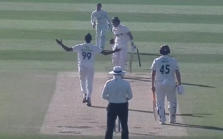 काउंटी चैंपियनशिप डिविजन वन में केंट और सरे के बीच मुकाबला खेला जा रहा है. इसमें अर्शदीप सिंह ने पहली पारी में बेन फोक्स और डेनियल वोरेल को आउट किया था, जबकि दूसरी पारी में उन्होंने केंट के लिए खतरा बने जेमी स्मिथ को आउट किया. अर्शदीप ने राउंड द विकेट गेंदबाज करते हुए सरे की तरफ से शतक लगा चुके जेमी स्मिथ को चकमा देते हुए उनका ऑफ स्टंप ही उखाड़ दिया. काउंटी चैंपियनशिप ने अर्शदीप के इस खास विकेट को शेयर किया है. अर्शदीप की गेंद टप्पा खाने के बाद अंदर की ओर से आई और स्मिथ इसे देखते रह गए. वीडियो में स्मिथ के विकेट को हवा में उछलते हुए देखा जा सकता है. स्मिथ उस समय 77 गेंदों में 114 रन बनाकर खेल रहे थे.