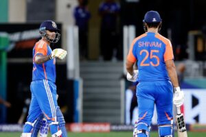 भारतीय कप्तान सूर्यकुमार यादव ने छक्के से मैच खत्म किया. विनिंग शॉट के बाद वह नॉन स्ट्राइकर एंड पर मौजूद शिवम दुबे के साथ सीधे लौट गए. दोनों ने पाकिस्तान के किसी खिलाड़ी से हाथ नहीं मिलाया. मैदान पर भारतीय टीम के अन्य खिलाड़ी भी बाहर नहीं आए और ड्रेसिंग रूम के बाहर ही सूर्या और दुबे का इंतजार किया.