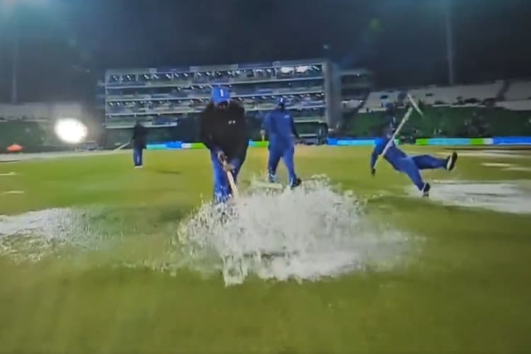 Champions Trophy 2025: बारिश ने चैंपियंस ट्रॉफी 2025 की मेजबानी कर रहे पाकिस्तान की पूरी तरह से पोल खोल कर रख दी है. 28 फरवरी को ऑस्ट्रेलिया और अफगानिस्तान के बीच मैच खेला रहा था, लेकिन बारिश के कारण रद्द कर दिया गया. उस मैच का एक वीडियो सोशल मीडिया में तेजी से वायरल हो रहा है. जिसमें ग्राउंड्स मैन मैदान सुखाते हुए नजर आ रहे हैं. लेकिन वो जिस तरह से ग्राउंड को सुखाते दिख रहे हैं, उसे देखकर लोग अपनी हंसी नहीं रोक पा रहे. और पाकिस्तान का जमकर मजाक उड़ा रहे हैं. लोग पाकिस्तान पर तंज कसते हुए लिख रहे हैं कि ‘…और इन्हें कश्मीर चाहिए.” कई यूजर्स ने तो पाकिस्तान की गरीबी का भी मजाक उड़ाया.