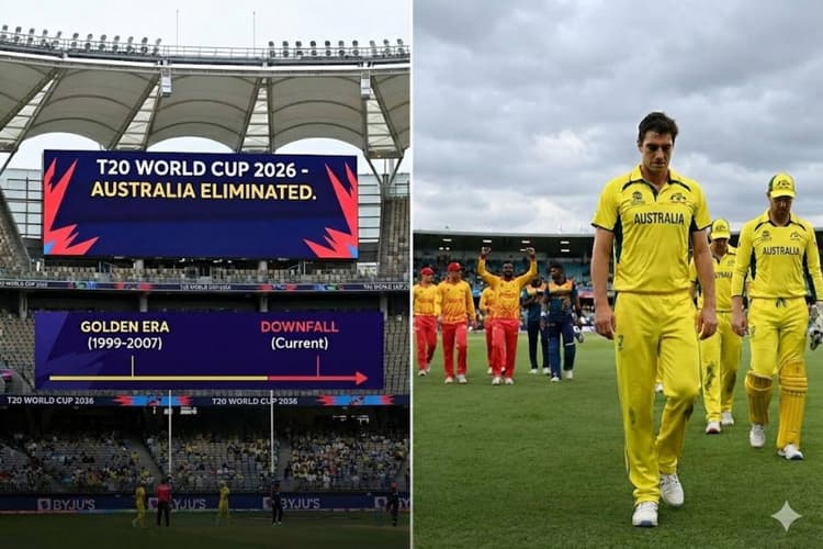 Australia Cricket Downfall: टी20 वर्ल्ड कप 2026 (T20 World Cup 2026) में ऑस्ट्रेलिया का सफर बेहद शर्मनाक तरीके से खत्म हो गया है. 13 फरवरी को जिम्बाब्वे से हारने के बाद, 16 फरवरी को श्रीलंका ने भी कंगारुओं को 8 विकेट से धूल चटा दी. इस करारी हार के बाद जिम्बाब्वे और आयरलैंड का मुकाबला रद्द हुआ जिससे ऑस्ट्रेलिया आधिकारिक तौर पर टूर्नामेंट से बाहर हो गया.