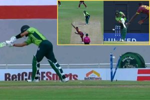 West Indies vs Pakistan 2nd ODI : वेस्टइंडीज ने पाकिस्तान को दूसरे वनडे में 5 विकेट से हराकर सीरीज 1-1 से बराबर कर ली. बारिश से 35 ओवर के मुकाबले में पाकिस्तान ने 7 विकेट पर 180 रन बनाए, जिसे मेजबान ने 33.2 ओवर में हासिल कर लिया. इस मैच में बाबर आजम खराब फॉर्म में रहे और तीन गेंद पर शून्य पर बोल्ड हो गए, जो उनके करियर का पांचवां डक है. (Babar Azam clean bowled on duck in WI vs PAK 2nd ODI video)