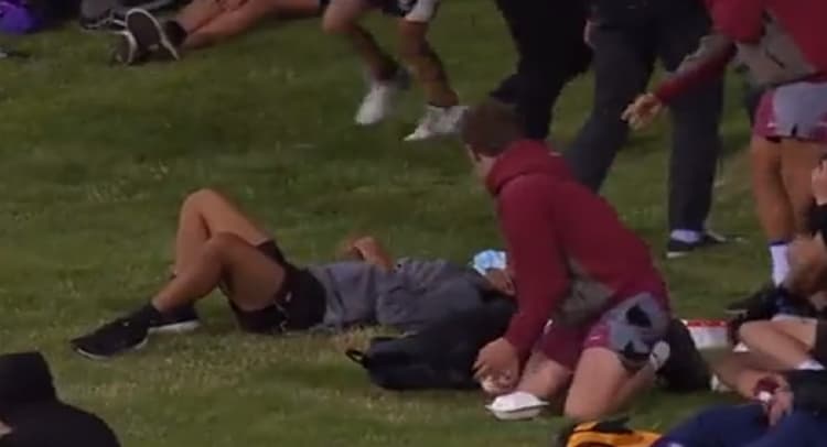 बेन मैकडरमोट ने एंड्रयू टाइ की गेंद पर करारा सिक्सर जमाया, लेकिन गेंद डीप मिडविकेट के ऊपर से सीधा बाउंड्री पार बैठे फैन के सिर पर जा लगी. गेंद सिर पर लगते ही फैन मौके पर ही जमीन पर गिर गया.
