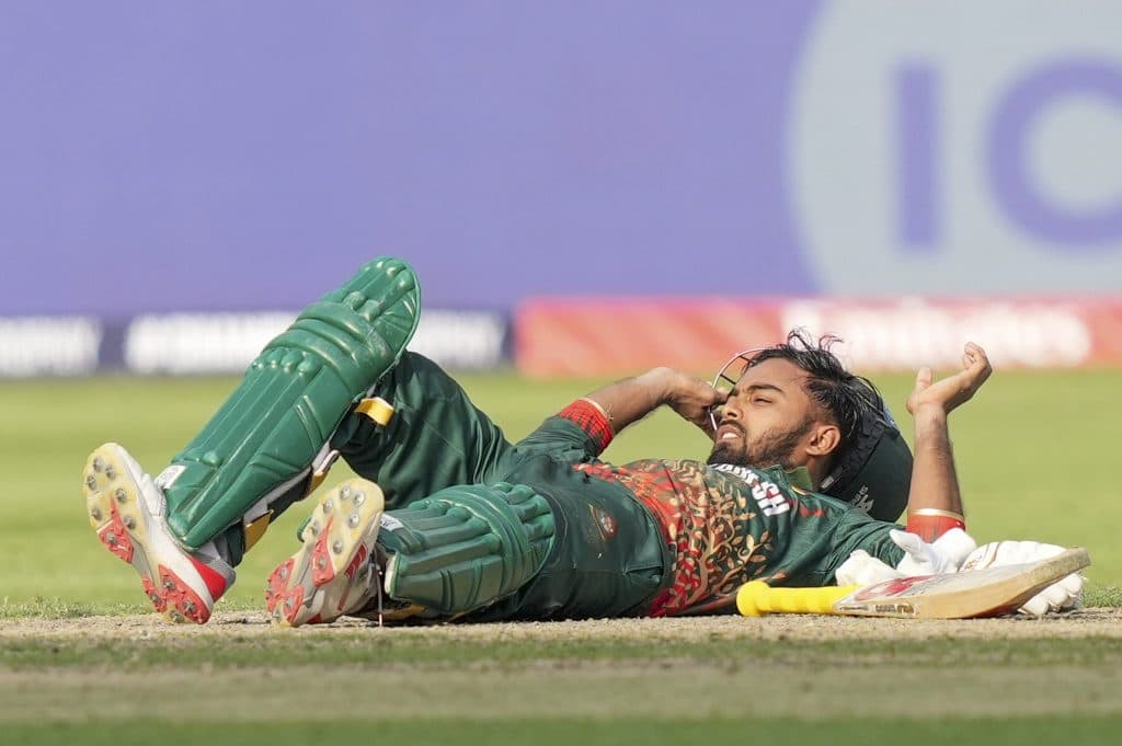 Champions Trophy 2025: बांग्लादेश के मध्यक्रम के बल्लेबाज तौहीद हृदोय ने चैंपियंस ट्रॉफी में भारत के खिलाफ मुकाबले में कमाल का जज्बा दिखाया है. उन्होंने लंगड़ाते हुए बल्लेबाजी की और भारत की खतरनाक गेंदबाजी का दिलेरी से सामना किया. इतना ही नहीं उन्होंने अपने करियर का पहला वनडे शतक पूरा किया. एक समय वह दौड़ने में बिल्कुल लाचार दिख रहे थे, यहां तक कि 99 के स्कोर पर वह दौड़ते-दौड़ते पिच पर गिर गए. आखिरकार उन्होंने एक रन और लेकर अपना शतक पूरा कर लिया. बाद में वह आखिरी ओवर में 100 के निजी स्कोर पर आउट हो गए.