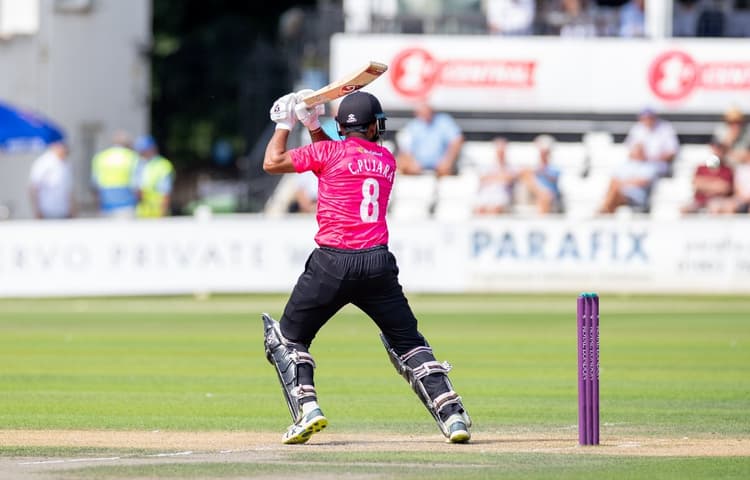 भारत के बल्लेबाज चेतेश्वर पुजारा इस समय इंग्लैंड में सनसनीखेज आउटिंग का लुत्फ उठा रहे हैं. खिलाड़ी ने 12 अगस्त को अपनी टीम ससेक्स के लिए खेलते हुए शतक लगाया था. पुजारा ने 79 गेंदों में 7 चौकों और 2 छक्कों की मदद से 107 रन बनाये थे. उनकी पारी में एक ओवर में 22 रन भी शामिल थे. रविवार को चल रहे रॉयल लंदन वनडे कप में अपने यादगार रन को जारी रखने के लिए दाएं हाथ के बल्लेबाज ने एक और शतक बनाया. उन्होंने 131 गेंदों पर 174 रन बनाये.