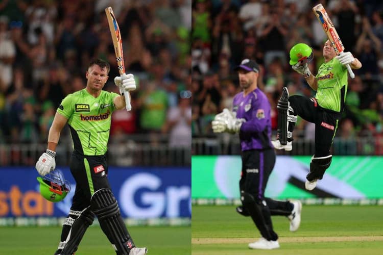 39 साल के डेविड वॉर्नर ने यह साबित कर दिया कि उम्र सिर्फ एक संख्या है. होबार्ट हरिकेन्स के खिलाफ उन्होंने पारी की शुरुआत की और शुरू से ही आक्रामक अंदाज में बल्लेबाजी की. वॉर्नर ने 200 के स्ट्राइक रेट से खेलते हुए सिर्फ 65 गेंदों में 130 रन बना डाले. उनकी इस पारी में 11 चौके और 9 छक्के शामिल रहे. मैदान के चारों तरफ शॉट्स लगाते हुए वॉर्नर ने दर्शकों को पुराने दिनों की याद दिला दी. सिडनी थंडर की पारी में वही अकेले बल्लेबाज रहे, जो पूरे समय क्रीज पर टिककर खेले.