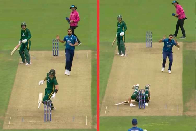 Viral Video: क्रिकेट में हिट विकेट आउट होना एक दुर्लभ प्रकार का आउट होना है और इसे शर्मनाक भी माना जाता है. दक्षिण अफ्रीका के बल्लेबाज ट्रिस्टन स्टब्स का यही हश्र लॉर्ड्स में इंग्लैंड के खिलाफ दूसरे वनडे में लगभग हो ही गया था. इंग्लैंड के तेज गेंदबाज साकिब महमूद की गेंद पर, स्टब्स ने शॉट तो अच्छी तरह खेला, लेकिन उनका बल्ला उनके हाथ से छूटकर स्टंप से कुछ इंच दूर जा गिरा. स्टब्स अपने बल्ले को स्टंप पर लगने से बचाने के लिए छटपटाते दिखे. आखिरकार उन्हें जीवनदान मिला और वे इसे रोकने में कामयाब रहे. जैसे ही स्टब्स ने शॉट मारा, बल्ला उनके हाथ से अजीब तरह से छूट गया. हालांकि, किस्मत उनके साथ थी क्योंकि बल्ला जमीन पर दो बार उछलने के बावजूद स्टंप्स से नहीं टकराया.