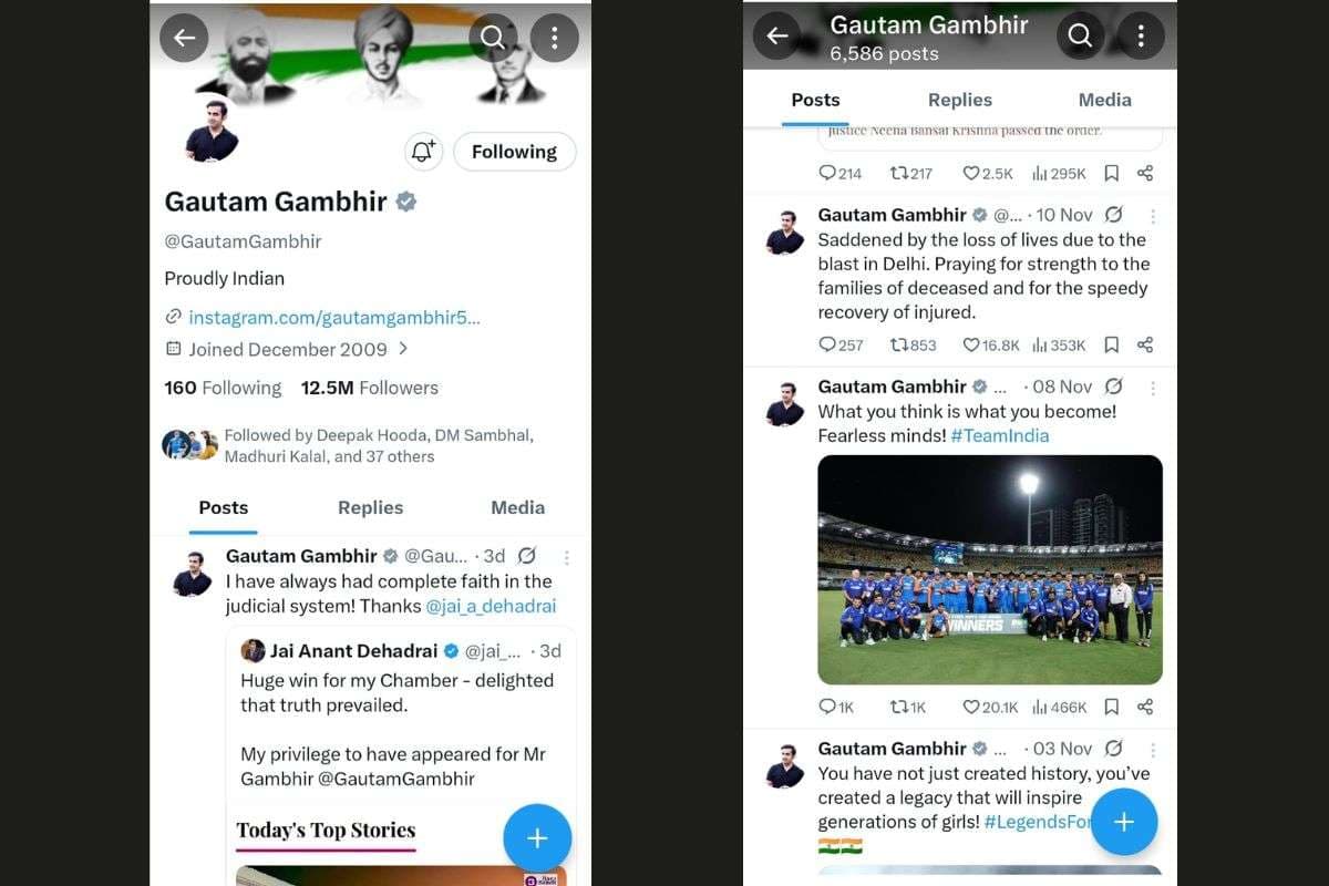 एक्स पर वायरल हो रहे पोस्ट जिस अकाउंट से पोस्ट किया गया है उसका हैंडल है @imRavY_ है और यह एक फर्जी अकाउंट है. गौतम गंभीर का असली एक्स अकाउंंट @GautamGambhir है. जिसको चैक करने पर पता चला कि गंभीर के अकाउंट से कोई भी ऐसा पोस्ट नहीं किया गया है. लेकिन अभी तक काफी फैंस भी इस भ्रामक पोस्ट को लेकर अपनी-अपनी प्रतिक्रियाएं दे चुके हैं. यहां पर क्लिक करके आप गौतम गंभीर के असली अकाउंट पर जा सकते हैं.