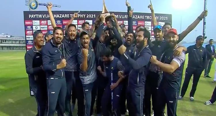 तमिलनाडु को हराकर हिमाचल प्रदेश ने विजय हजारे ट्रॉफी (Vijay Hazare Trophy) पर कब्जा जमा लिया है. जयपुर के सवाई मानसिंह स्टेडियम में खेले गये मुकाबले में विकेट कीपर दिनेश कार्तिक (Dinesh Karthik) के शतकीय पारी के दम पर हिमाचल प्रदेश ने पहले बल्लेबाजी करते हुए 49.4 ओवर में 314 रन पर ऑल आउट हो गयी.