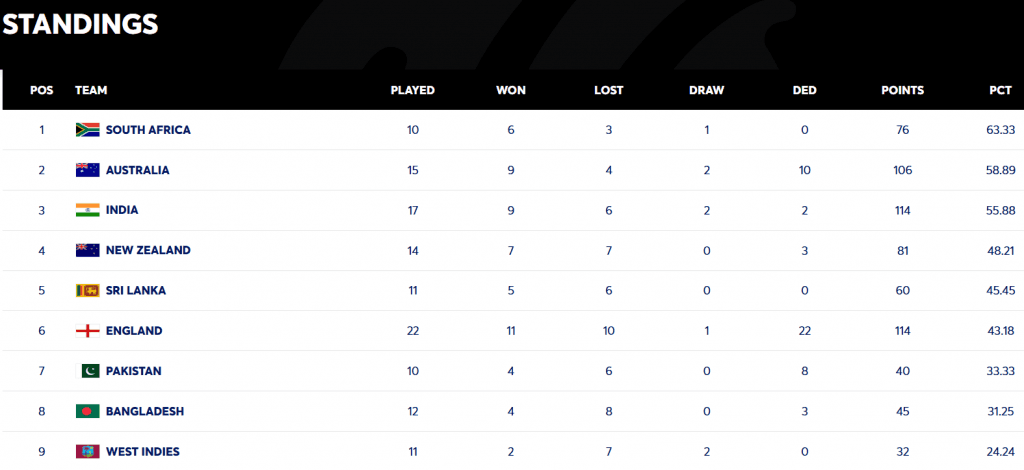 वर्तमान में दक्षिण अफ्रीका WTC फाइनल की दौड़ में नंबर वन पर है. उसके बाद ऑस्ट्रेलिया और भारत हैं. अगर भारत 3-1 से सीरीज जीतता है, तो वह अपने आप ही एलीट टूर्नामेंट के फाइनल के लिए क्वालीफाई कर लेंगे. लेकिन अगर भारत मेलबर्न में चौथा टेस्ट हार जाता है या ड्रॉ कर देता है, तो भी वह WTC फाइनल के लिए क्वालीफाई कर सकता है. उस स्थिति में, रोहित शर्मा की टीम को दो टेस्ट सीरीज, दक्षिण अफ्रीका बनाम पाकिस्तान और श्रीलंका बनाम ऑस्ट्रेलिया के नतीजों पर निर्भर रहना होगा.