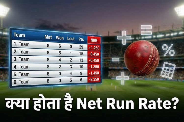 नेट रन रेट का सीधा मतलब है अपनी रन बनाने की गति और सामने वाली टीम की रन बनाने की गति का अंतर. यह बताता है कि एक टीम ने पूरे टूर्नामेंट में अपने विरोधियों के मुकाबले कैसा प्रदर्शन किया है. अगर आपकी टीम ने विपक्षी टीम से ज्यादा तेजी से रन बनाए हैं, तो आपका नेट रन रेट पॉजिटिव (+) यानी प्लस में होगा. अगर आपने रन धीरे बनाए और विपक्षी टीम ने आपके खिलाफ तेजी से रन बनाए, तो यह नेगेटिव (-) यानी माइनस में चला जाएगा. यह सिर्फ सीमित ओवरों के खेल के लिए है.