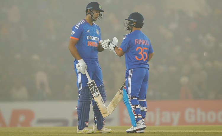 शिवम दूबे ने इस मैच में 38 गेंदों पर अपना अर्धशतक पूरा किया और इस दौरान चार चौके और एक छक्का लगाया और यह इंटरनेशनल टी20 क्रिकेट में उनका दूसरा अर्धशतक रहा. इस मैच में उन्होंने 40 गेंद खेलते हुए दो छक्के और पांच चौकों की मदद से नाबाद 60 रन की पारी खेली जबकि रिंकू सिंह भी 16 रन बनाकर नाबाद रहे.