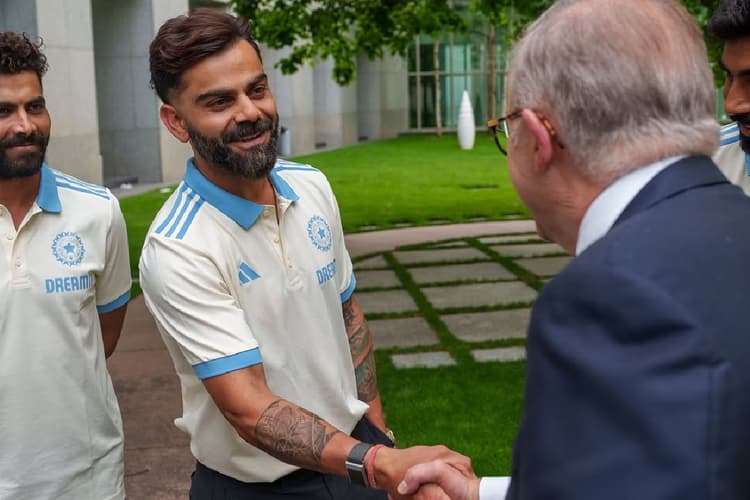 विराट कोहली के पर्थ शतक की कहानियां जंगल में आग की तरह फैल रही हैं. दूसरा टेस्ट गुलाबी गेंद से डे-नाइट खेला जाएगा, जो एडिलेड में होने वाला है. टीम इससे पहले एक अभ्यास मैच के लिए कैनबरा पहुंची है और प्रधानमंत्री के कार्यालय में भारतीय टीम प्रधानमंत्री एंथनी अल्बनीज से मिली. कप्तान रोहित शर्मा ने जसप्रीत बुमराह से शुरुआत करते हुए एक-एक करके अपने खिलाड़ियों का प्रधानमंत्री से परिचय कराया. अल्बानी ने कोहली के साथ एक विशेष बातचीत की.
