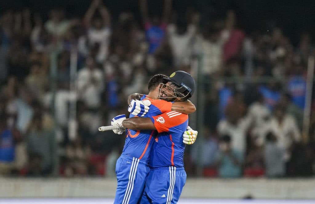 IND vs BAN: India's Sanju Samson celebrates his century with captain Suryakumar Yadav