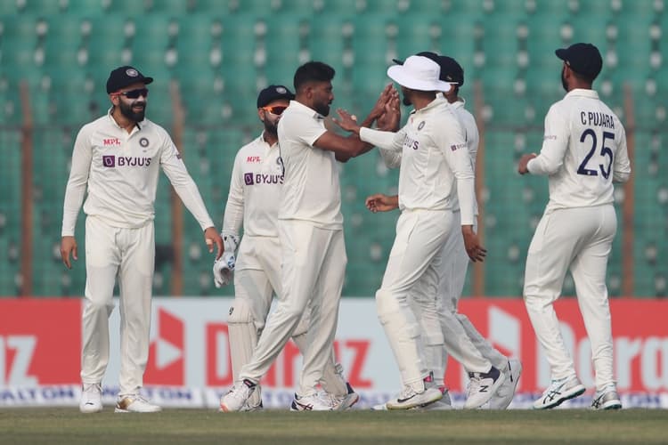 भारत के दायें हाथ के तेज गेंदबाज मोहम्मद सिराज ने गुरुवार को बांग्लादेश को पहली पारी में बड़ा झटका दिया है. उन्होंने तीन शुरुआती विकेट चटकाकर पूरी टीम की कमर तोड़ दी. उसके बाद का कसर कुलदीप यादव ने पूरा किया. कुलदीप यादव ने चार विकेट लेकर मध्यक्रम को भी ध्वस्त कर दिया. बांग्लादेश दूसरे दिन का खेल समाप्त होने तक 8 विकेट के नुकसान पर 133 रन ही बना सका था. भारत ने पहली पारी में 404 रन बनाये.