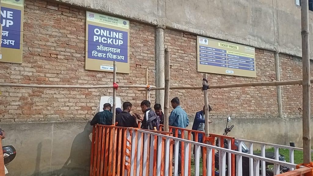 IND vs ENG: दो काउंटरों पर ऑफलाइन टिकटों की बिक्री हो रही है, जबकि दो और काउंटर पर ऑनलाइन बुक करने वालों को फिजिकल टिकट दिए जा रहे हैं. स्टेडियम में प्रवेश के लिए फिजिकल टिकट लेना अनिवार्य है.
