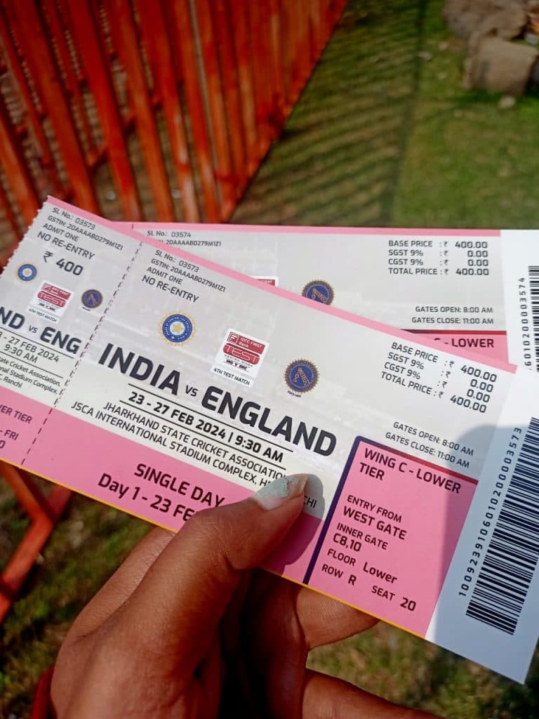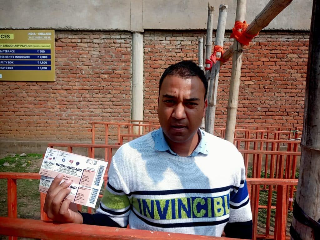IND vs ENG: मैच को लेकर रांची के लोग काफी उत्साहित हैं. मुरी से टिकट खरीदने आए युवराज बताते हैं कि उन्होंने 400 वाली टिकट ली है. पहले दिन उनकी परीक्षा है इसलिए वह शनिवार को मैच देखने आएंगे. यह उनके लिए पहली बार है जब वह लाइव कोई मैच देख पाएंगे. इसलिए पहले ही दिन आकर अपनी टिकट ले ली है.