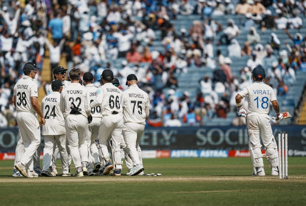 जब वह मैदान से बाहर निकले तो उन्होंने अपना गुस्सा निकालने के लिए अपना बल्ला एक बॉक्स पर दे मारा. कोहली का यह वीडियो सोशल मीडिया पर वायरल हो रहा है. न्यूजीलैंड उन मजबूत टीमों में शामिल हो गई, जिन्होंने भारत में टेस्ट सीरीज में जीत दर्ज की है. ऐतिहासिक रूप से केवल 5 टीमों ने यह उपलब्धि हासिल की है. इनमें इंग्लैंड (5 बार, आखिरी बार 2012/13 में), वेस्टइंडीज (5 बार, आखिरी बार 1983/84 में), ऑस्ट्रेलिया (4 बार, आखिरी बार 2004/05 में), पाकिस्तान (1986/87), और दक्षिण अफ्रीका (1999/2000) की टीमें हैं. इस सीरीज जीत के साथ, न्यूजीलैंड इस विशिष्ट सूची में शामिल हो गया.