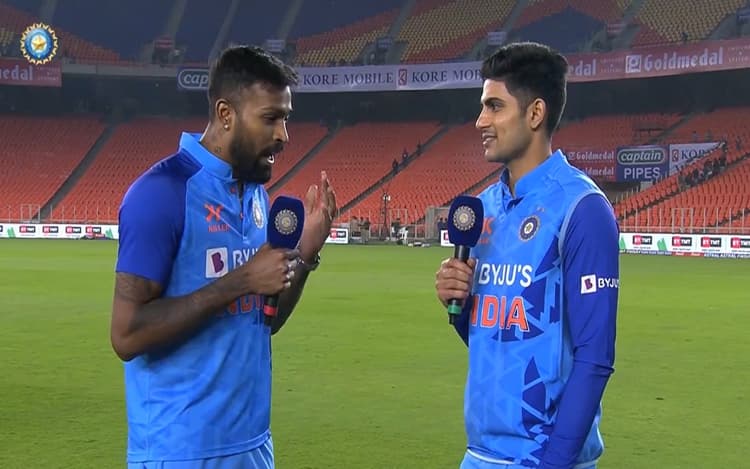 Hardik Pandya Shubman Gill Interview: टीम इंडिया ने बुधवार को न्यूजीलैंड के खिलाफ तीसरे और निर्णायक मुकाबले में 168 रनों के बड़े अंतर से जीत दर्ज कर सीरीज 2-1 से अपने नाम की. इस जीत के हीरो शुभमन गिल रहे. गिल ने इस मैच भारत के लिए 63 गेंद पर 126 रनों की नाबाद पारी खेली. वहीं मैच के बाद कप्तान हार्दिक पांड्या ने शुभमन गिल का इंटरव्यू लिया. दोनों ही खिलाड़ियों ने एक-दूसरे के साथ अपने अनुभव साझा किए. बीसीसीआई ने इसका वीडियो अपने ऑफिशियल अकाउंट ट्विटर पर शेयर किया है.