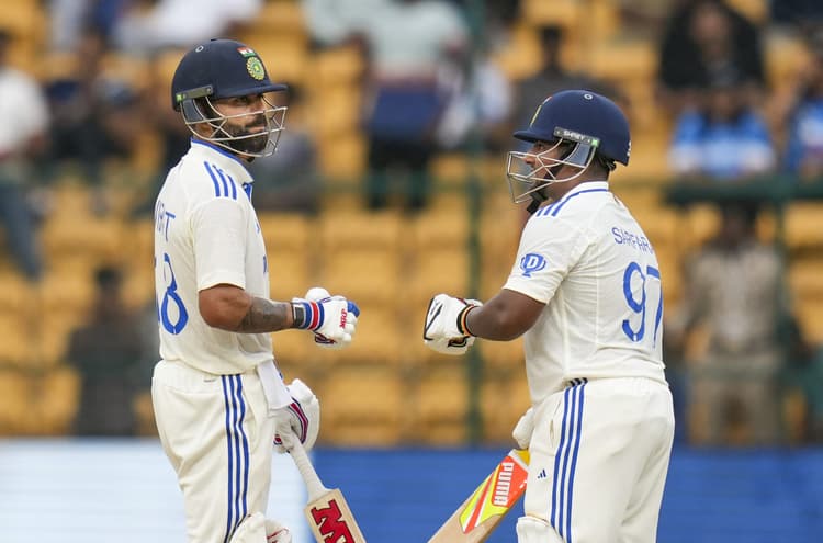 दो विकेट गिरने के बाद विराट कोहली और सरफराज खान ने पारी को संभाला. दोनों ने अपना-अपना अर्धशतक पूरा किया. तीसरे दिन के खेल के आखिरी गेंद पर विराट कोहली 70 रन बनाकर आउट हो गए. सरफराज 70 रन बनाकर क्रीज पर जमे हुए हैं. दोनों के बीच तीसरे विकेट के लिए शतकीय साझेदारी हुई, जिसकी भारत को बेहद जरूरत थी. भारत के पास अब भी दो दिन का समय है. भारत को एक बड़ा स्कोर करना होगा और फिर न्यूजीलैंड को छोटे स्कोर पर समेटना होगा. दूसरी पारी में भारत ने अब तक 3 विकेट के नुकसान पर 231 रन बनाए हैं.