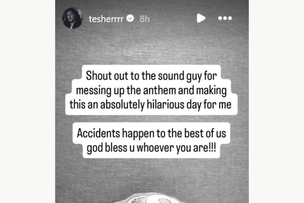 जब पाकिस्तान का राष्ट्रगान बजाने का समय आया तो डीजे से गलती हो गई, क्योंकि टेशर और जेसन डेरुलो का बेहद लोकप्रिय गाना ‘जलेबी बेबी’ दुबई इंटरनेशनल स्टेडियम में गूंजने लगा. यह गाना लगभग छह सेकंड तक कार्यक्रम स्थल पर गूंजता रहा और उसके बाद ही पाकिस्तान का राष्ट्रगान फिर से बजाया गया. इस पर सोशल मीडिया पर खूब प्रतिक्रियाएं आ रही हैं और अब ‘जलेबी बेबी’ के कलाकार टेशर ने इस पर प्रतिक्रिया देते हुए पाकिस्तानी टीम का मजाक उड़ाया है. टेशर ने इंस्टाग्राम स्टोरीज पर लिखा, ‘एंथम को बिगाड़ने और मेरे लिए इसे बेहद मजेदार दिन बनाने के लिए साउंड मैन को सलाम. दुर्घटनाएं हममें से सबसे अच्छे लोगों के साथ भी होती हैं, भगवान आपका भला करे, चाहे आप जो भी हों.’