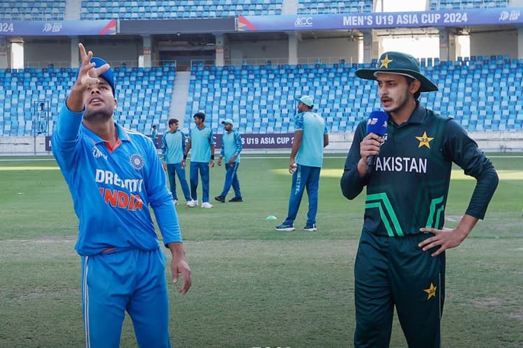 IND vs PAK: चैंपियंस ट्रॉफी को लेकर भारत और पाकिस्तान भले ही आमने-सामने हैं, लेकिन अभी इन दोनों टीमों के बीच दुबई में मुकाबला शुरू हो गया है. पाकिस्तान ने टॉस जीतकर बल्लेबाजी का फैसला किया है. भारतीय टीम की कमान उत्तर प्रदेश के मोहम्मद अमान के हाथ में है. वहीं पाकिस्तान टीम की कप्तानी साद बेग के हाथ में है. वे अपनी टीम के विकेटकीपर भी हैं.