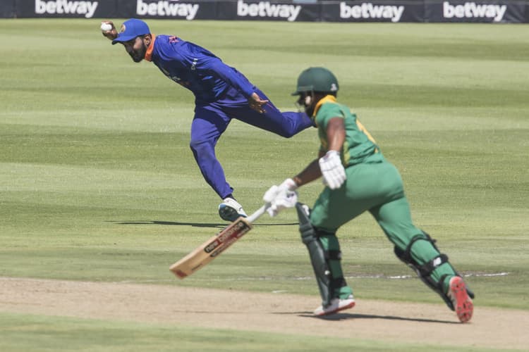 सातवें ओवर में दीपक चाहर की एक गेंद को टेम्बा बावुमा ने मिड ऑफ के दाहिनी ओर खेल दिया. बावुमा रन लेने के लिए भागे. इससे पहले कि बावुमा सुरक्षित क्रीज तक पहुंच पाते कप्तान के एल राहुल ने स्टंप पर सीधे गेंद दे मारी. बाद में थर्ड अंपायर ने रिप्ले देखने के बाद बावुमा को पवेलियन भेज दिया. बावुमा 12 गेंदों में केवल आठ रन ही बनाए.