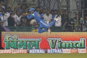 लॉन्ग-ऑन पर खड़े तिलक ने ऊंची छलांग लगाई और दोनों हाथों से कैच लपक लिया. हालांकि, जब उन्हें एहसास हुआ कि वह बाउंड्री के बाहर जाने वाले हैं तो जमीन छुने से पहले ही उन्होंने गेंद को वापस मैदान के अंदर फेंक दिया. उन्होंने कमाल का एथलेटिकिज्म और सूझबूझ दिखाया, जिसका एक वीडियो क्लिप तेजी से इंटरनेट पर वायरल हो गया. वीडियो में देखा जा सकता है कि तिलक ने कितनी तेजी से हवा में छलांग लगाई और कितनी खूबसूरती से गेंद को कैच किया. हालांकि अगले ओवर में वह मैदान से बाहर डगआउट में बैठे नजर आए.
