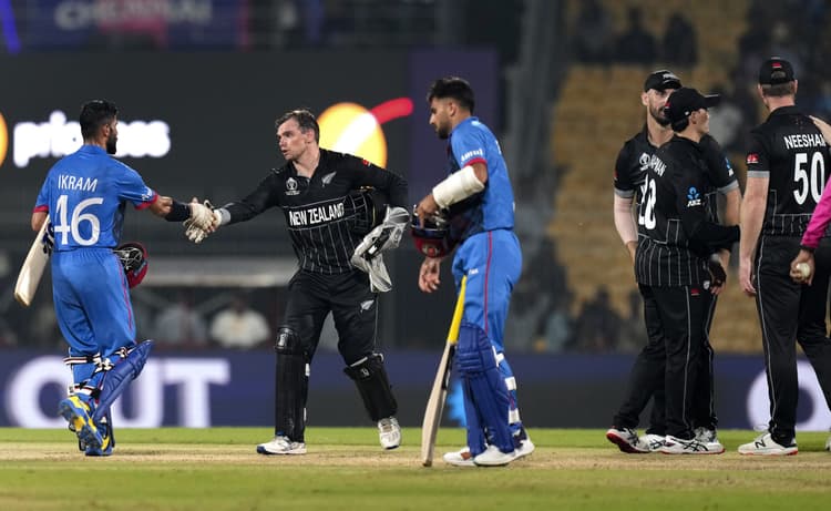 वर्ल्ड कप 2023 (World Cup 2023 ) के 16वें मुकाबले में न्यूजीलैंड ने अफगानिस्तान को 149 रन से रौंदकर लगातार चौथी जीत दर्ज की. इस धमाकेदारी जीत के साथ ही न्यूजीलैंड ने प्वाइंट्स टेबल में भी बड़ा उलटफेर कर दिया है. दूसरी ओर न्यूजीलैंड की जीत से भारत को भी बड़ा झटका लगा है. अफगानिस्तान के खिलाफ रिकॉर्ड जीत के बाद प्वाइंट्स टेबल में न्यूजीलैंड की टीम ने नंबर वन पर कब्जा कर लिया है. न्यूजीलैंड के चार मैचों में जीत के बाद 8 अंक हो गए हैं और उसका नेट रन रेट +1.923 हो गया है. न्यूजीलैंड को सेमीफाइनल में पहुंचने के लिए अब केवल तीन मैचों में जीत दर्ज करना होगा.