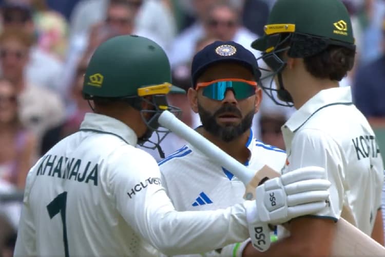 India vs Australia: मेलबर्न में बॉक्सिंग डे टेस्ट में भारत और ऑस्ट्रेलिया की टीमें आमने-सामने हैं. कंगारुओं की ओर से डेब्यू करने वाले सैम कोंस्टस ने मेलबर्न में बॉक्सिंग डे टेस्ट के पहले दिन भारत के खिलाफ 52 गेंदों में अर्धशतक जड़ा. हालांकि, 60 के स्कोर पर रवींद्र जडेजा ने उनको अपना शिकार बना लिया. खेल के दौरान कोंस्टस और भारतीय स्टार विराट कोहली के बीच मैदान पर गर्मागर्म बहस हो गई. 19 साल के बल्लेबाज कोंस्टस और कोहली के कंधे टकराए और बहस शुरू हो गई, मामला अतना बढ़ गया कि दूसरे खिलाड़ियों और अंपायर को बीच-बचाव कर मामले को शांत कराना पड़ा. इसका वीडियो वायरल हो रहा है.