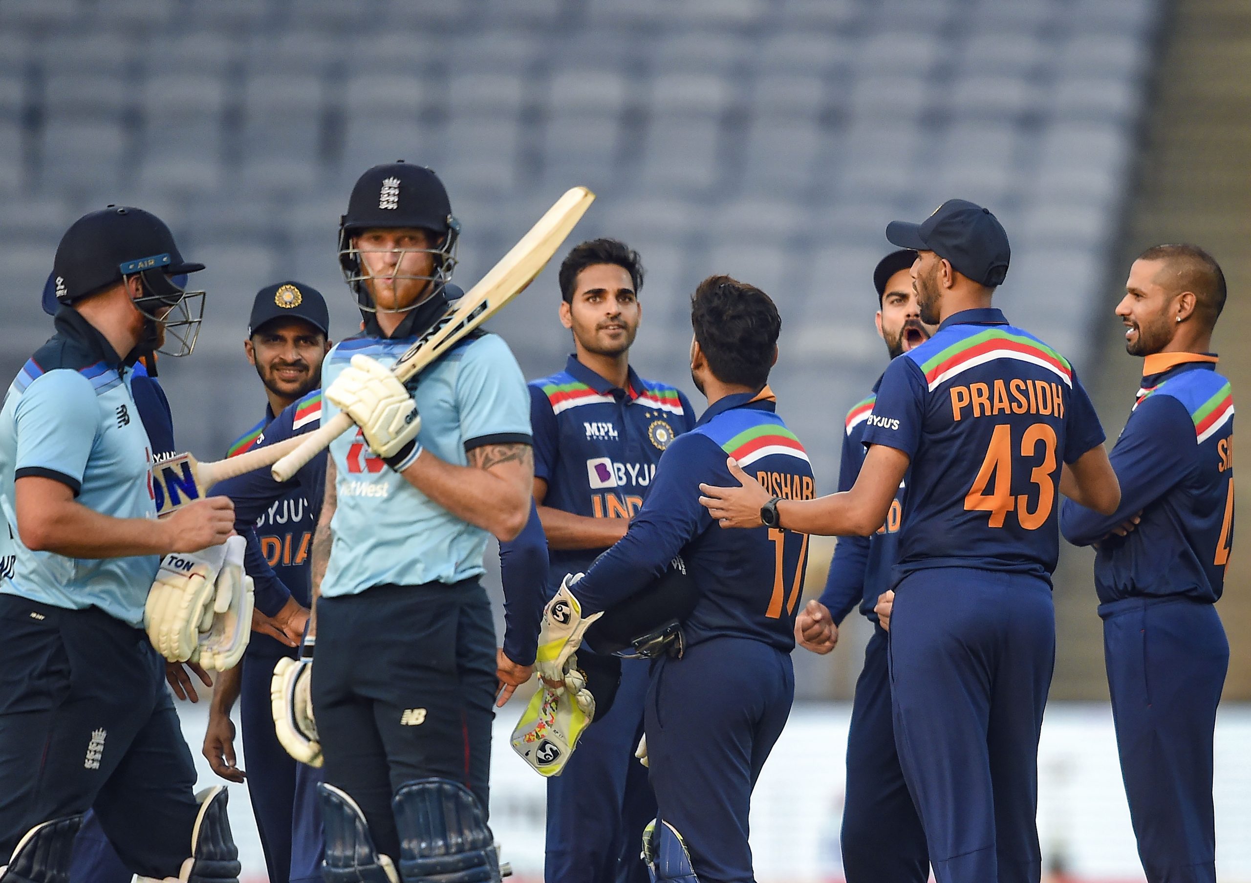 इसके बाद ऋषभ पंत (62 गेंदों पर 78) और हार्दिक पंड्या (44 गेंदों पर 64) ने 99 रन जोड़कर स्थिति संभाली. इन दोनों ने समान पांच चौके और चार छक्के लगाये. भारत ने इस तरह से इंग्लैंड से तीनों प्रारूपों में श्रृंखला जीती. उसने टेस्ट मैचों में 3-1 और टी20 अंतरराष्ट्रीय में 3-2 से जीत दर्ज की थी. भुवनेश्वर ने दोनों सलामी बल्लेबाजों जैसन रॉय (14) और जॉनी बेयरस्टॉ (एक) को लगातार ओवरों में आउट करके भारत को अच्छी शुरुआत दिलायी. उन्हें बेन स्टोक्स का विकेट भी मिल जाता लेकिन हार्दिक ने उनका हवा में लहराता आसान कैच छोड़ दिया. स्टोक्स हालांकि इसका फायदा नहीं उठा पाये और टी नटराजन की फुलटास उन्होंने डीप मिडविकेट पर धवन के सुरक्षित हाथों में पहुंचा दी. स्कोर तीन विकेट पर 68 रन हो गया.